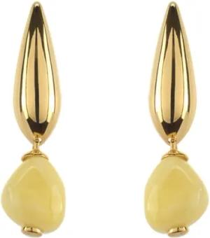 Milky Bernstein Ohrringe 3,8 ct, 925er vergoldetes Sterlingsilber, Baltic Fancy Cabochon, 32 mm Tropfen, elegante Ohrhänger aus Polen, warmes Gelb
