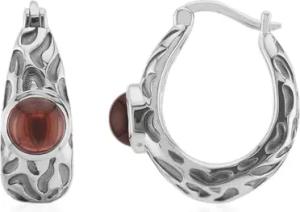 Mosambik-Granat Ohrringe 1,933 ct in 925 Sterling Silber, runder Cabochon, moderne Creolen mit Tansania Zirkon, eleganter roter Schmuck, 21 mm Höh