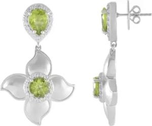 Peridot Silberohrringe 925 Sterling Silber, 5,785 ct Peridot Tropfen- & Rundschliff, 68 funkelnde Zirkone, floral elegant hängend, grün silberfarben, Dallas Prince Designs