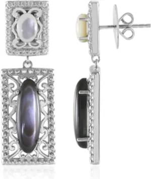 Perlmutt Silberohringe 925 Sterling Silber mit ovalen Perlmutt Cabochons und weißem Quarz, elegante Silberohrringe mit Zirkonen, filigranes Design, 40 mm
