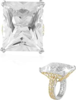 Silberring 40,5 Karat Weißer Quarz Oktagon-Radiantschliff in 925 Sterling, filigran eleganter Damenring, modernes Design, 32x23 mm, brasilianischer Edelstein