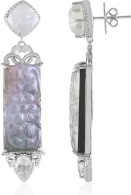 Sterlingsilber Perlmutt Ohrringe Damen 925 Silber, Elegante Baguette und Kissen Schliff Kristalle, Weißer Quarz & Topas 1,35 ct, 57 mm lang, Dezentes Design
