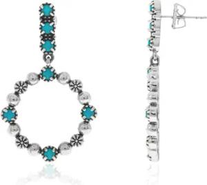Türkis Ohrringe Silber 925 Sterlingsilber mit 14 Türkis Cabochons 1,485 ct rund 3 mm, Desert Chic Stil, 36 mm, elegant und modern, sommerliche Statement-Ohrringe
