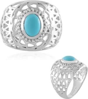 Türkis-Silberring 925 Sterling Silber plattiert, 1,018 ct ovaler Türkis Cabochon, filigranes modernes Gitterdesign, eleganter Schmuck in Blau, 23x20 mm, USA-Qualität