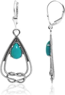 Türkisohrringe Tropfen in Sterling Silber 925, 1,98ct Blau Türkis Cabochon, Tropfenform, Wüsten Chic Design, 47mm Länge, elegante Ohrschmuck für Damen USA Stil