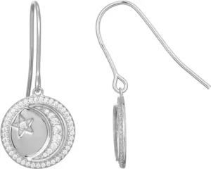 Zirkon Ohrringe Silber 925, Runde Zirkonohrringe mit Stern- und Mond Motiv, 27mm Elegante Silberohrringe mit 0,37ct Nigerianischen Zirkonen, Pave, Ohrhaken
