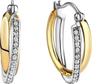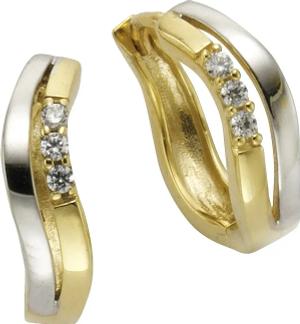Gold Ohrring 375/- Gelbgold bicolor mit Zirkonia