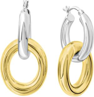 Silber Creolen mit Einhänger 925 Sterling Silber zweifarbig