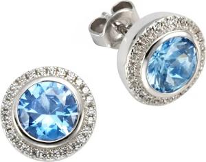 Silber Ohrring 925/- Sterling Silber Zirkonia & sy. Blautopas