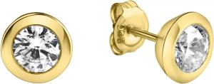 Silber Ohrringe Silber 925 vergoldet mit weißem Zirkonia-Stein 6mm