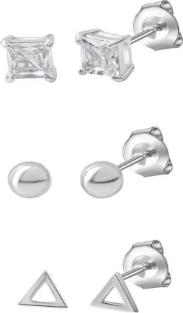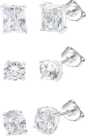 Silber Ohrstecker Set 925 Sterling Silber rhodiniert Zirkonia