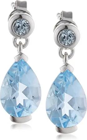 Ohrringe Weißgold 375 mit echtem Blautopas (beh.) und Zirkonia-Steinen