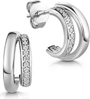 Damen Ohrringe Silber 925 Halbcreolen - Zirkonia Stecker SO-496