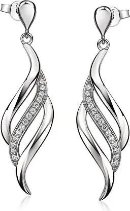 Elegante Damen Ohrstecker Ohrhänger Silber 925 - mit Zirkonia lang gedreht in Schmuck Etui SO-455