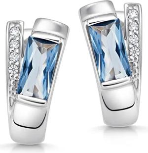 MATERIA Creolen Ohrringe Rechteck 925 Silber Zirkonia blau rhodiniert in Schmuckbox #SO-348