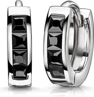 Materia Creolen schwarz Damen - Klappcreolen Silber 925 mit Zirkonia SO-453-Schwarz
