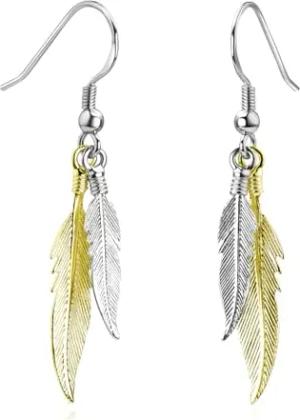 Materia Damen Gold Ohrhänger Silber 925 Feder Ohrringe SO-119-Gold