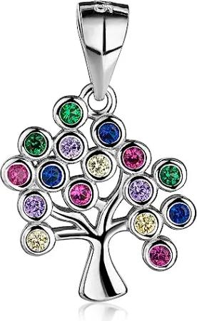 Materia Damen Kettenanhänger Silber 925 Lebensbaum KA-518-Bunt