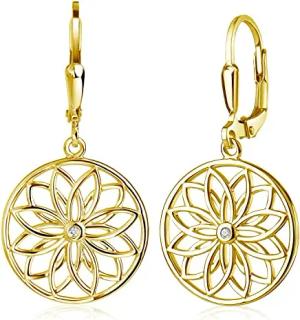 MATERIA Gold Ohrringe hängend Damen - Blume Mandala Zirkonia Silber 925 vergoldet SO-503-Gold