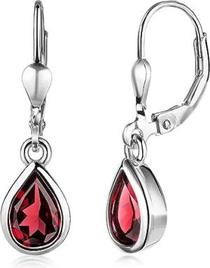 Materia Granat Ohrringe Silber 925 hängend in Tropfenform SO-448-Rot