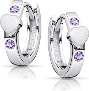 Materia Kinder Ohrringe Creolen Silber 925 - Zirkonia Klappcreolen Herz SO-391-Violett