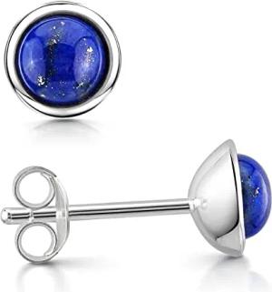 Materia Lapislazuli Ohrstecker Damen - Edelstein Ohrringe rund SO-46-Blau