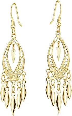 Materia Orientalische Ohrringe Silber 925 Gelbgold vergoldet 18x65mm SO-222-Gold