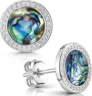 MATERIA Perlmutt Ohrringe Silber 925 - Damen Ohrstecker grün rund flach mit Zirkonia in Schmuck-Etui SO-394-Perlmutt