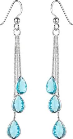 Materia Tropfen Ohrringe Silber 925 mit Zirkonia Steine SO-277-Hellblau