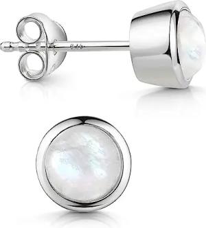 Mondstein Ohrringe Silber 925 Ohrstecker Damen 7mm rund SO-242