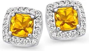 Damen-Ohrstecker Ohrschmuck 925 Silber rhodiniert Zirkonia gelb Brillantschliff-ZO-7199/CH