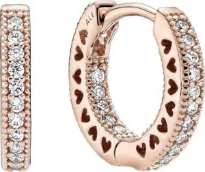 Signature Pavé-Herz Creolen aus 14 Karat rosévergoldeterr Metalllegierung mit klaren, funkelnden Cubic Zirkonia und ausgestanzten Herzen
