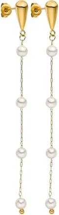 Dewdrop Ohrringe – Elegante Hänger mit Muschelperlen an feiner Kette – Edelstahl 18K vergoldet – 75 mm Länge – Festlicher Perlenschmuck für Damen – Gold/Silber/Roségold (Gold)