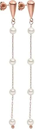 Dewdrop Ohrringe – Elegante Hänger mit Muschelperlen an feiner Kette – Edelstahl 18K vergoldet – 75 mm Länge – Festlicher Perlenschmuck für Damen – Gold/Silber/Roségold (Rosegold)