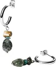 Island Dream Ohrringe – Creolen mit Amazonit, grünem Achat & Albite-Jade – Edelstahl 18K vergoldet – Damen Hängeohrringe 37 mm – Sommerlicher Boho-Look (Silver)