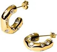 Damen Creolen Ohrringe – Edelstahl 18K vergoldet/rosévergoldet oder Silber, 17 mm – Weiße Zirkonia – Eleganter Schmuck, hypoallergen, langlebig, modisch