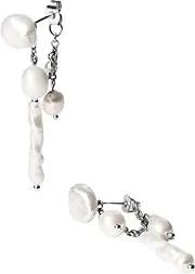 Pearl Symphony Ohrringe – 3-in-1 Look mit Barockperle – 18K vergoldeter Edelstahl – Tragemöglichkeiten: Stecker, Loop & Kettendetail – 4,9 g (Paar) (Silver)