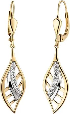 Boutons Ohrhänger Blätter mit weißen Zirkonia, 375 Gold Gelbgold Ohrringe