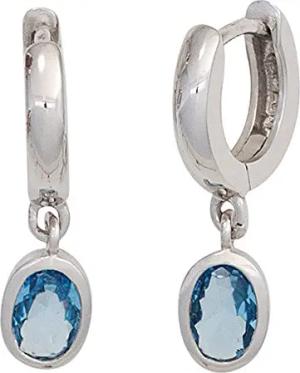 Creolen Ohrringe aus 925 Silber Zirkonia hellblau oval facett Ohrschmuck Damen