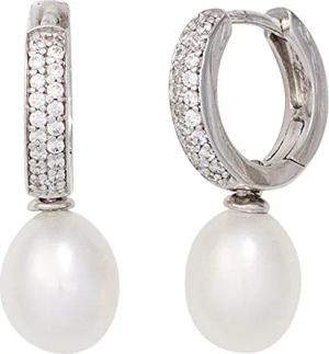 Creolen Ohrschmuck Ohrringe 925 Silber Süßwasser Perlen Zirkonia weiß Damen