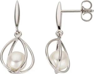 Ohrhänger Hängerstecker aus 585 Gold Weißgold mit Süßwasser Perlen weiß Ohrringe