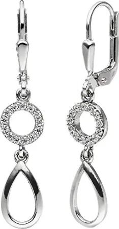 Ohrhänger Ohrringe Boutons Ring & Tropfen weiße Zirkonia 925 Silber rhodiniert