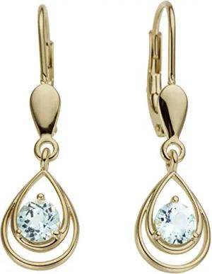 Ohrhänger Tropfen aus 585 Gold Gelbgold 2 Blautopase hellblau blau Ohrschmuck