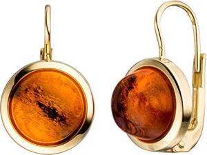 Ohrringe Boutons Ohrhänger Bernstein braun-orange Halbkugel 333 Gold Gelbgold
