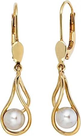 Ohrringe Ohrhänger Boutons mit Süßwasser Zuchtperlen 585 Gold Gelbgold