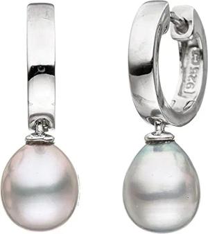 Ohrringe Creolen Ohrhänger graue Süßwasser Perlen 925 Silber Ohrschmuck Damen