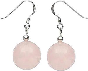 Ohrringe Ohrhänger aus echtem Rosenquarz & 925 Silber Ø14mm facettiert Damen