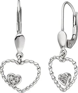 Ohrringe Ohrhänger Herz Herzen Doppelherz mit 6 Diamanten 585 Gold Weißgold