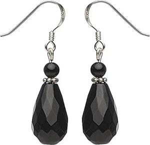 Ohrringe Ohrhänger Tropfen echter Onyx facettiert 925 Silber schwarz Ohrschmuck Damen