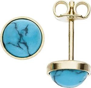 Ohrstecker Ohrringe blaue Türkise, rund, 333 Gold Gelbgold Ohrschmuck